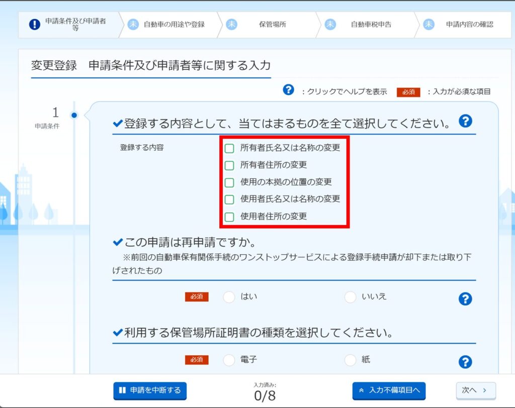 例えば、所有者と使用者が同一人物で、引っ越しを伴わない場合は、次の項目にチェックを入れて申請します。