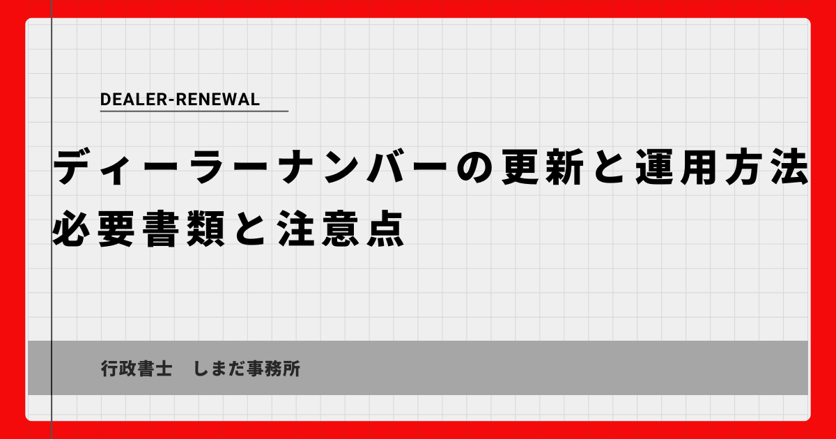 ディーラーナンバーの更新と運用方法|必要書類と注意点