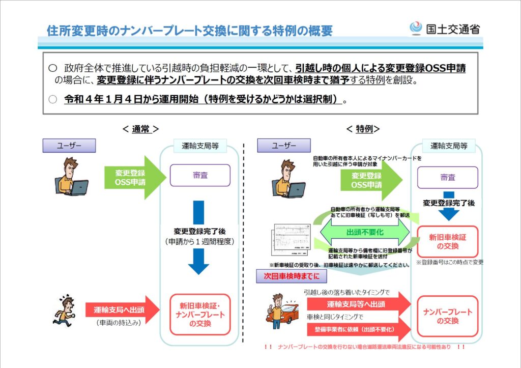 「住所変更時のナンバープレート交換に関する特例の概要」