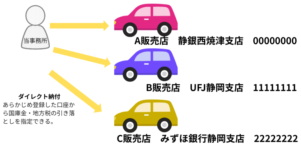 OSSでは「ダイレクト納付」という仕組みを利用することで、税金や手数料を口座引き落としで支払うことができます。